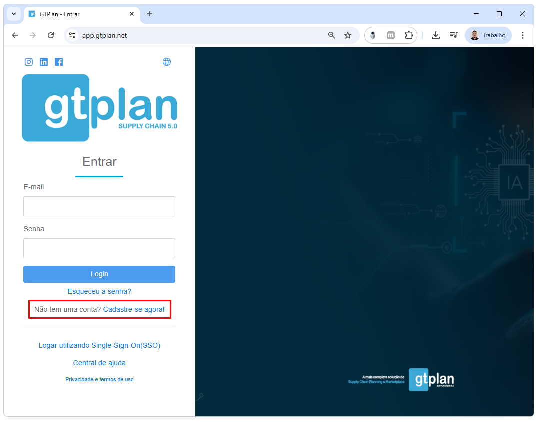 1. Acesse o link: https://app.gtplan.net/
